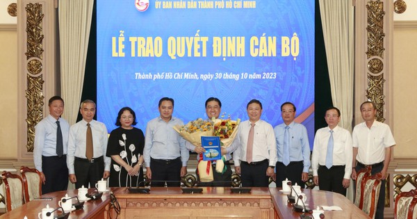 Phó Chủ tịch UBND TP HCM Dương Anh Đức trao quyết định bổ nhiệm và chúc mừng ông Trương Đức Hùng